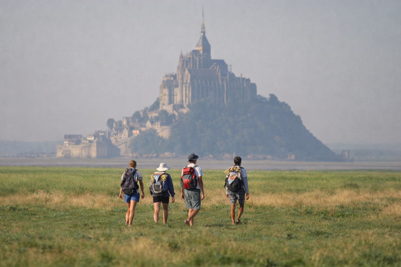 En empruntant les chemins ancestraux des pèlerins, cette traversée de la baie du Mont-Saint-Michel offre une immersion rare au cœur d’un site naturel d’exception. Tantôt pieds nus sur le sable, en lien direct avec les éléments, tantôt en hauteur le long des falaises normandes, l’itinéraire alterne ambiances et points de vue spectaculaires.