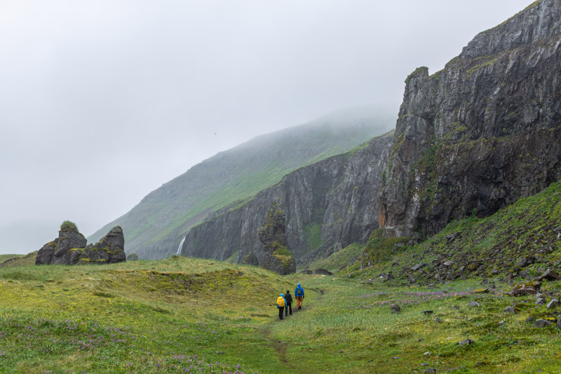 Toute la région regorge d'une histoire et d'une faune sauvage uniques en Islande. En été, des millions d'oiseaux marins survolent les falaises, tandis que les renards polaires arpentent les terres, faisant souvent preuve d'une grande curiosité. Au fil de vos randonnées, nos guides partageront avec vous les récits des habitants qui ont vécu ici jusqu'à l'abandon des colonies peu après la Seconde Guerre mondiale.