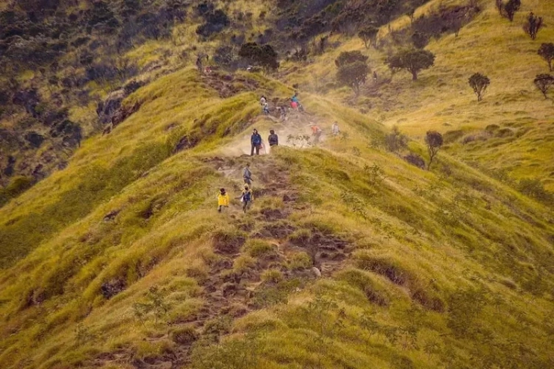 En début ou milieu de matinée, vous reprenez la route pour le camp de base (1.710 m) du volcan Sumbing et y débutez son ascension. Vous traversez d’abord de nombreuses plantations d’altitude sur un chemin bien tracé mais déjà assez raide. A l’altitude de 2.665 m, vous atteignez une intersection où vous pourrez vous rafraîchir (nombreux cours d’eau). Plus haut, une belle section de sentier traverse des rochers de couleur rouge. Vous atteignez ensuite les bords du cratère (3.300 m), où vous installez votre camp.