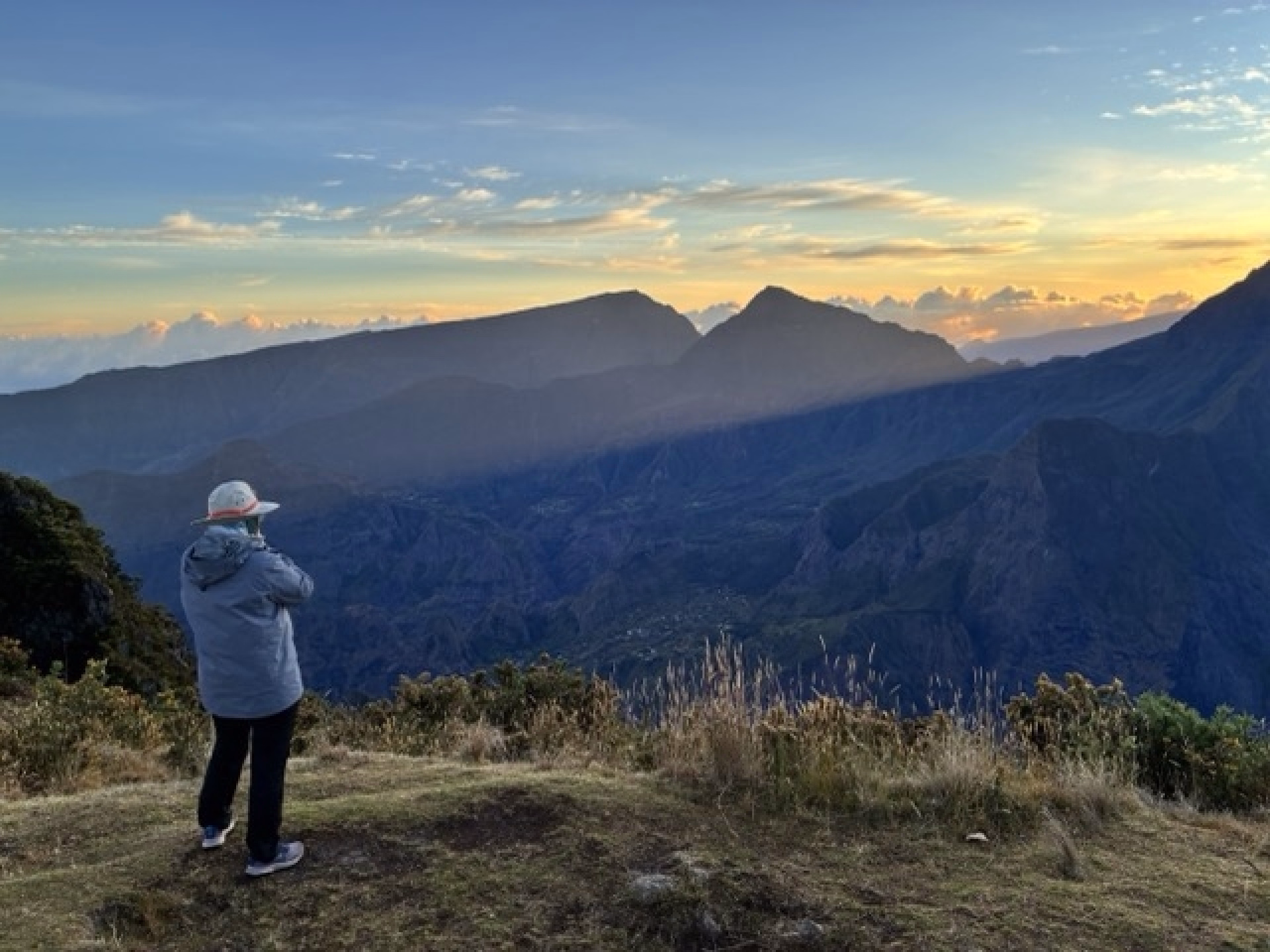 Le lever de soleil sur le rempart du Maïdo est un spectacle inoubliable. Nous suivrons ensuite le GRR3 en direction de Marla, avec une pause déjeuner aux magnifiques Trois Roches.