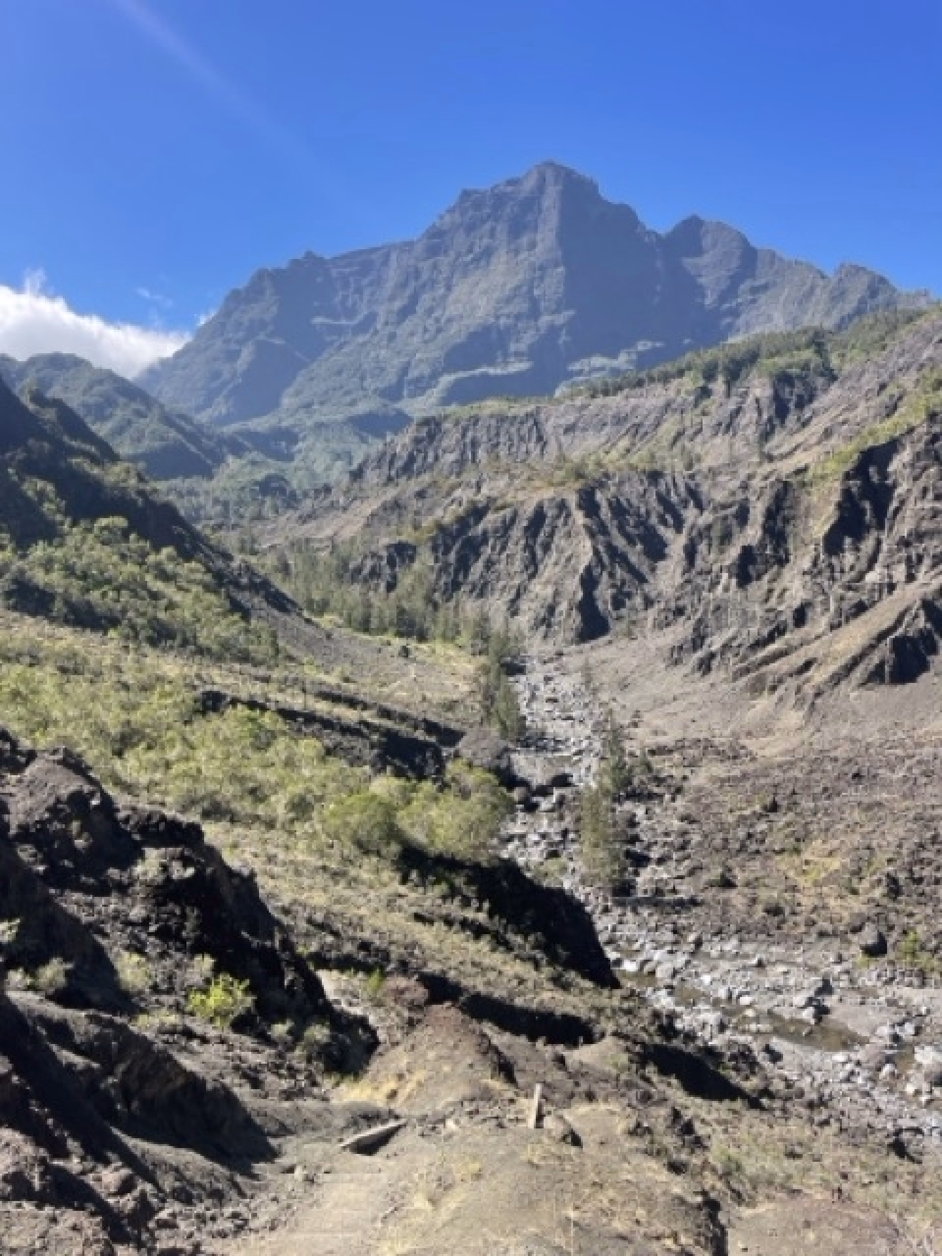 Après un réveil sous les sommets du Grand Bénare et du Gros Morne, nous grimperons le col du Taïbit pour rejoindre le cirque de Cilaos.