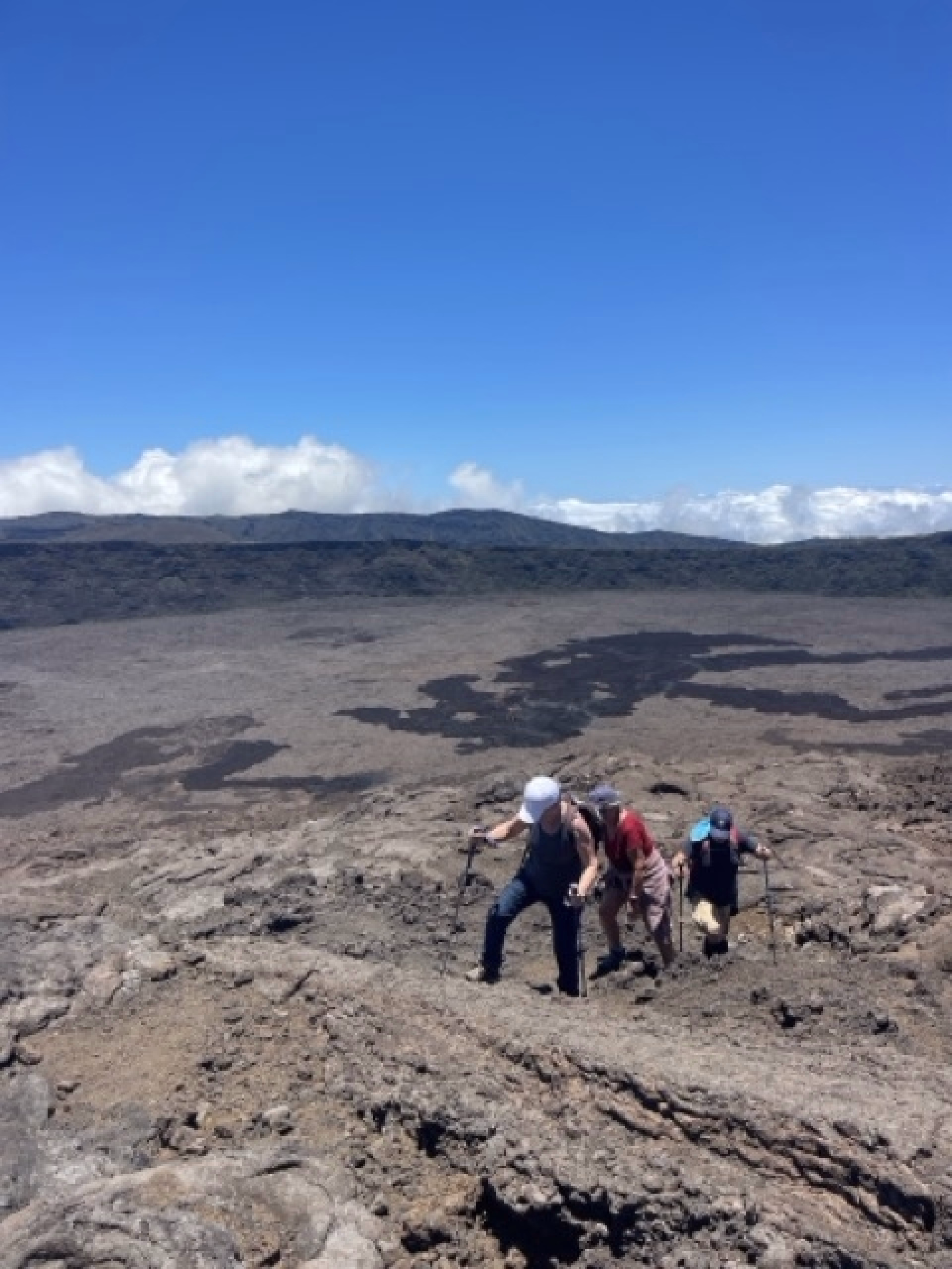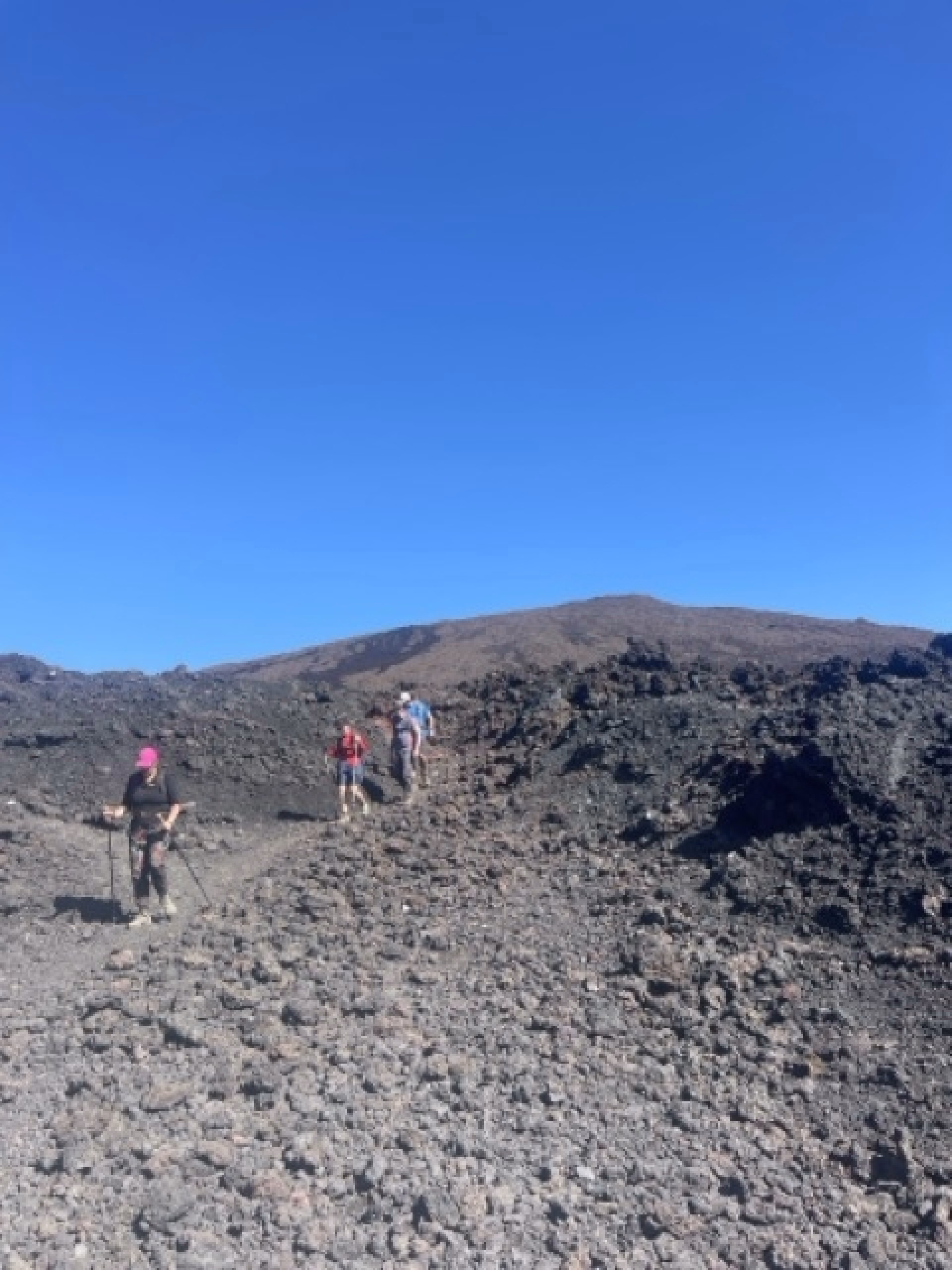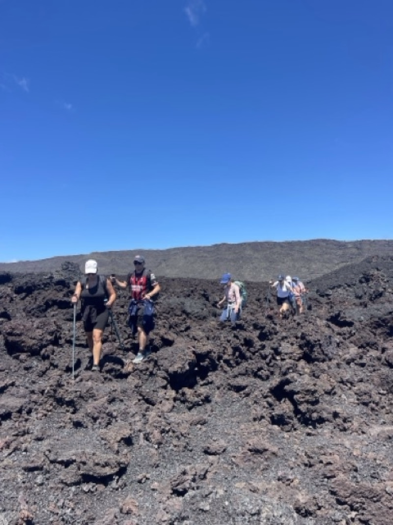 Nous nous réveillons au refuge du Volcan, prêts pour une journée spectaculaire. Après un petit-déjeuner, nous partons à l’assaut de l’Enclos Fouqué, un paysage lunaire où nous marcherons sur les traces des éruptions passées.