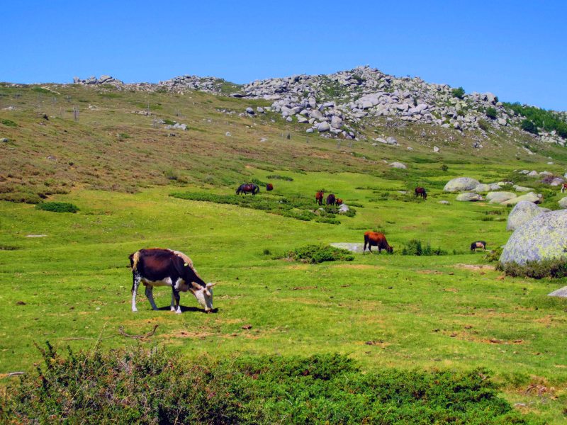 Petit détour jusqu'au sommet du Monte Alcudina qui culmine à 2134m. La vue y est panoramique et donne un avant-goût des marches à venir. Puis descente vers le plateau du Cuscione. Vous longez la crête pour rejoindre Bocca di Chiralba puis les bergeries du même nom. Il est alors temps de profiter de ce plateau « Pianu », le plus grand de Corse. Terre de transhumance estivale, cette haute surface alterne zones sèches, forêts de hêtres et pozzine. Vous rejoignez une bergerie sur les bords du plateau pour y passer la nuit.