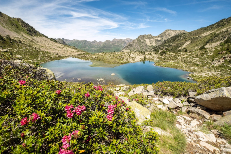 La randonnée se poursuit ensuite par la traversée de la vallée Dets Coubouts et de ses lacs. Le sentier, parfois très caillouteux, reflète parfaitement l’identité minérale du massif.