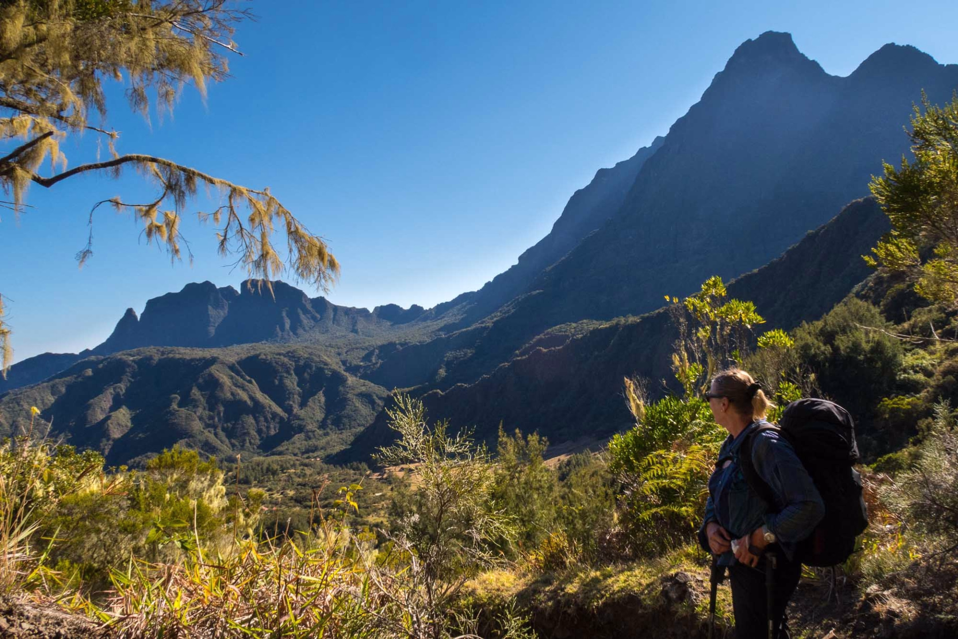 Au départ du parking gardé en ville de La Possession, nous prenons la route direction le cirque de Salazie, que nous traversons intégralement, jusqu’au parking du col des Boeufs. (2h, 90 km). Notre trek commence ici avec une vue somptueuse sur Mafate. Après la traversée de la féérique plaine des Tamarins, nous descendons jusqu’à la rivière des Galets pour remonter jusqu’a l’îlet de Marla, plus haut îlet de Mafate.