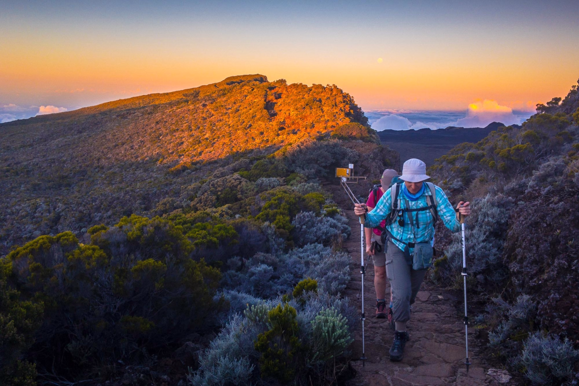 Au départ de Cilaos, nous rejoindrons le départ du sentier du Bloc en bus de ville (3 km, 10 minutes), en début d’après-midi. Nous entamerons la remontée du raide rempart verdoyant, pour arriver au refuge de la caverne Dufour en fin de journée et profiter des extraordinaires couleurs du coucher de soleil à presque 2500 m d’altitude, autour du traditionnel « cari ».