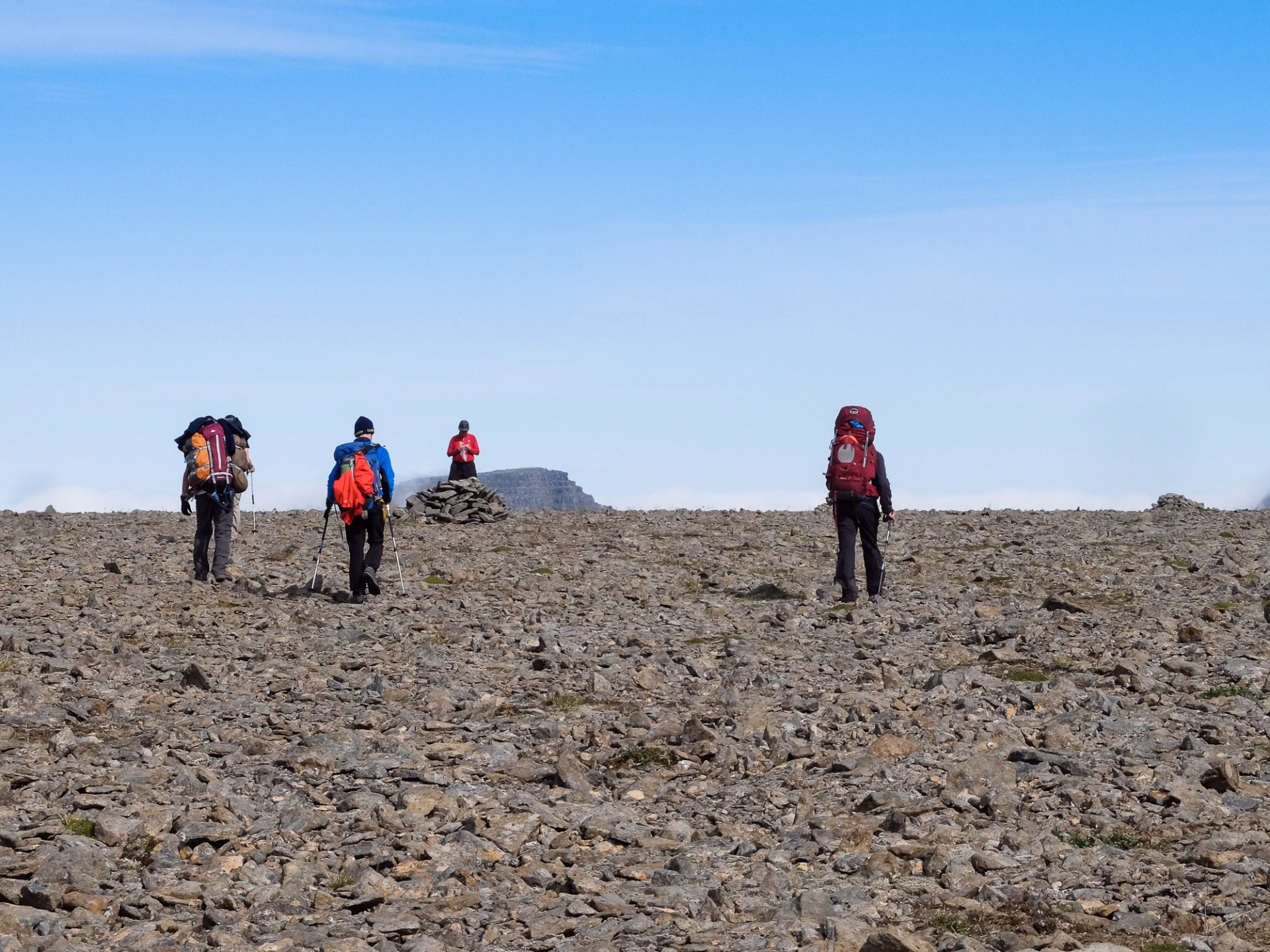 Nous profitons d'une matinée calme et détendue avant de lever le camp. La première partie du sentier nous mène sur une première crête, alors que nous progressons vers le sud pour rejoindre le bateau. Nous suivons les cairns de pierre ancestraux jusqu'au dernier col de montagne avant de redescendre vers le fjord Veiðileysufjörður. Une fois arrivés sur la côte, une courte marche nous conduit au point de rendez-vous avec le bateau pour notre retour à Ísafjörður, marquant ainsi notre retour à la civilisation après six jours en pleine nature. Pour prolonger la détente, vous aurez la possibilité de vous rendre dans l'une des piscines locales ou d'explorer la ville.