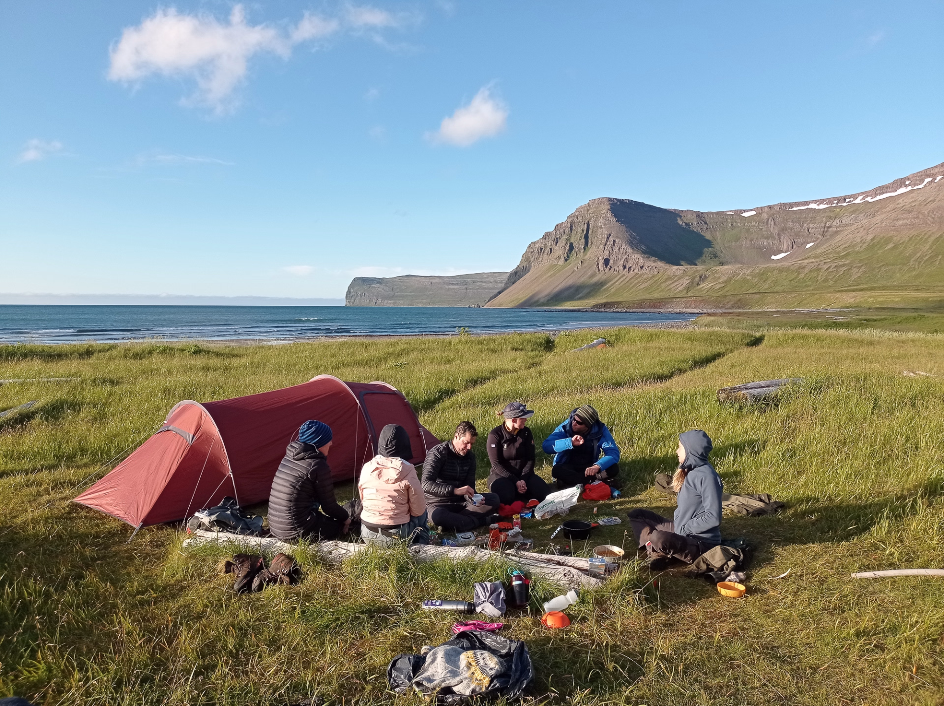 Nous passerons six nuits sous des tentes de randonnée, dont deux nuits dans notre camp de base tout confort de la baie de Hornvík. Là-bas, nous aurons accès aux installations locales et pourrons prendre nos repas dans notre tente chauffée.