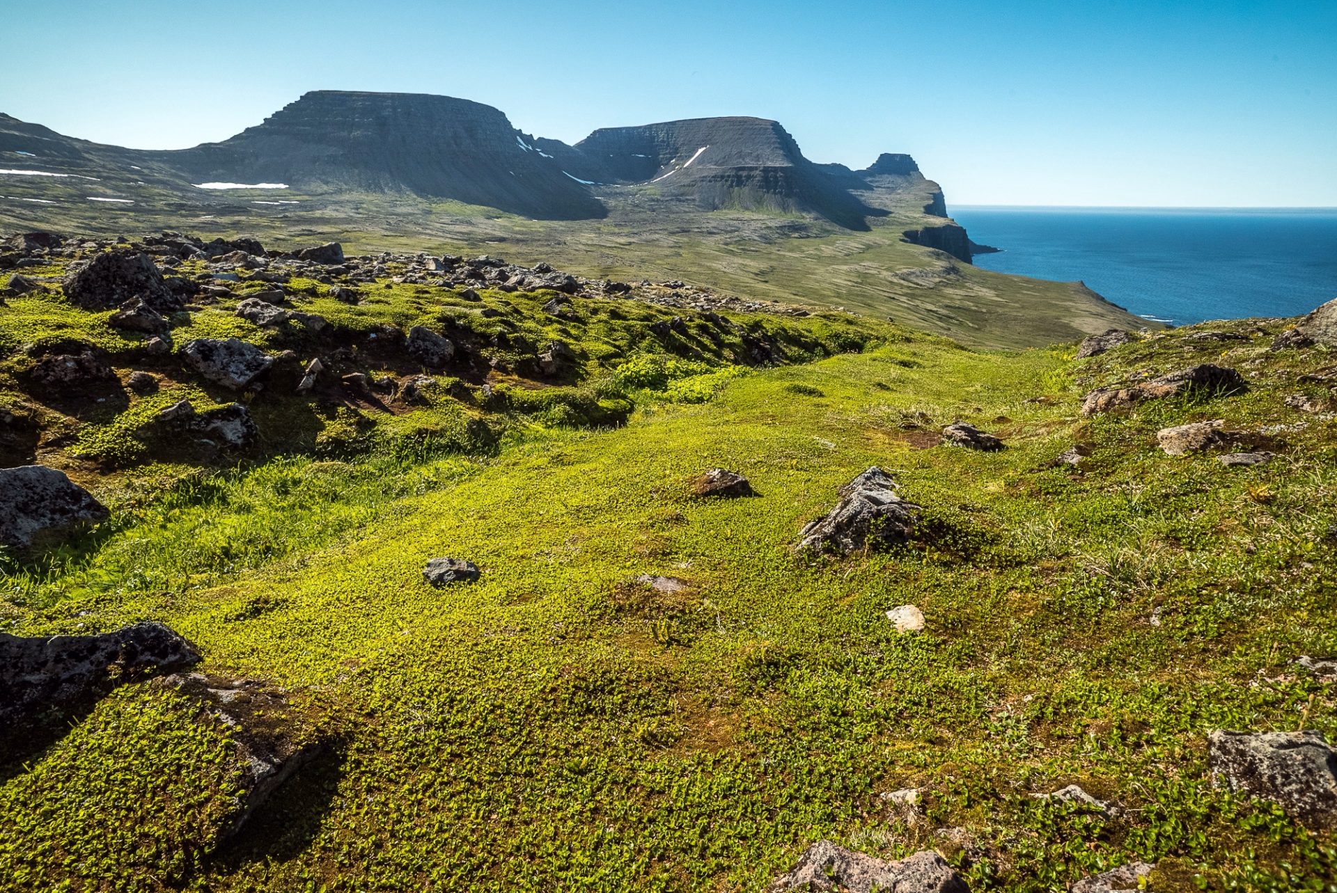 La réserve naturelle de Hornstrandir est un mélange remarquable de beauté sauvage et de nature intacte. De spectaculaires falaises montagneuses séparent la terre de la mer, révélant des formations de basalte escarpées côtoyant des bras de mer étroits et des vallées isolées. Il s’agit d’une expédition de randonnée en autonomie totale, où nous porterons tout notre équipement. Le périple comprend trois jours de marche et trois nuits de bivouac le long de l'itinéraire.