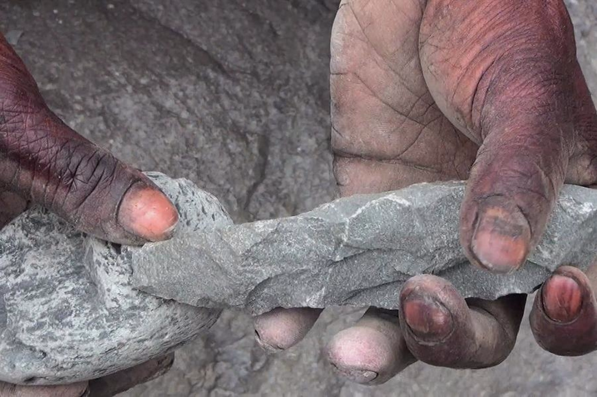 Remontée lente vers Larie, dans l’après-midi, avec tous les blocs de pierre récupérés, considérés comme de véritables trophées. Une fois au village, les Una, au pied de la case des hommes, nous montrent comment ils taillent et polissent ce basalte, afin de fabriquer les herminettes.