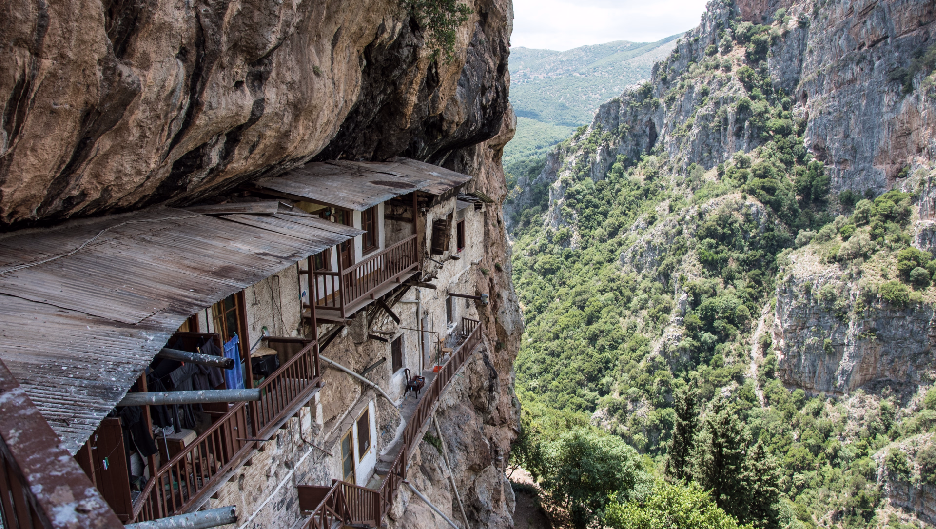 Le sentier traverse les gorges époustouflantes de Lousios, l'un des itinéraires les plus pittoresques et les plus riches en histoire du Péloponnèse. Nous commençons par traverser de paisibles terres agricoles anciennes et descendons vers l'église de la Transfiguration du Christ, qui offre une vue imprenable sur les gorges en contrebas.