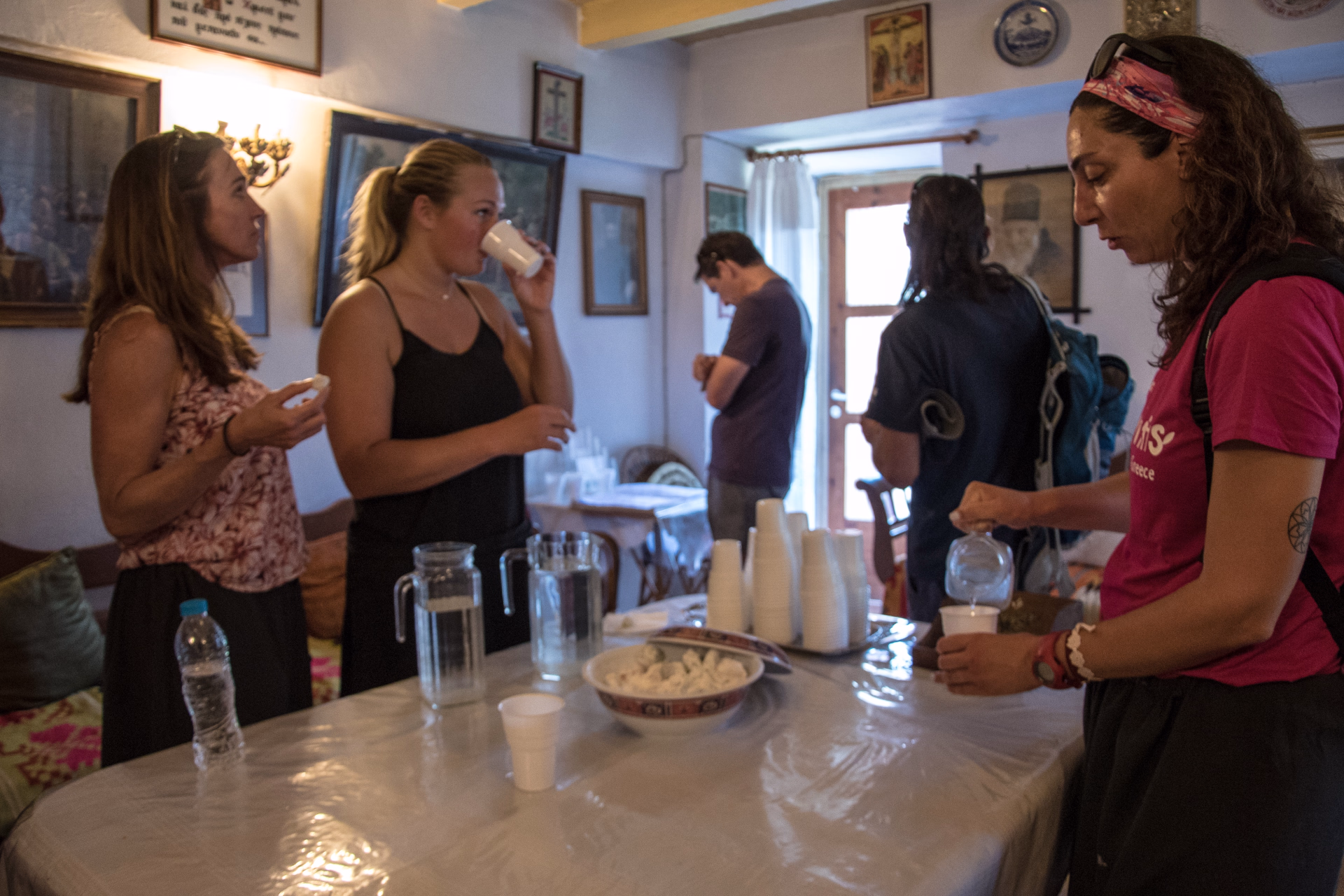 En suivant un mélange de sentiers et de chemins de terre, nous traversons d'anciennes terres agricoles, passons devant le monastère de Sainte-Apostoli et marchons le long d'un chemin pavé bordé de grandes aires de battage. Au mémorial des Immortels, nous faisons une pause pour rendre hommage aux héros locaux de la révolution de 1821 avant d'entrer dans le fier village de montagne de Zigovisti.