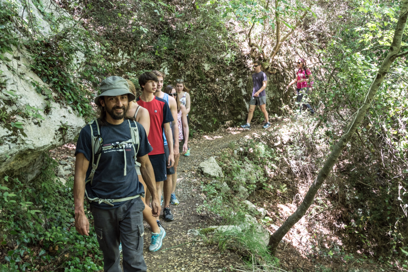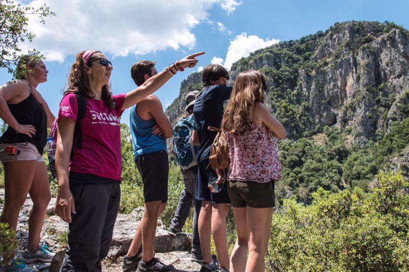 La dernière montée, douce mais régulière, traverse un paysage rocheux de flysch parsemé d’arbustes méditerranéens, avant d’atteindre Nymfasia, à 880m d’altitude.