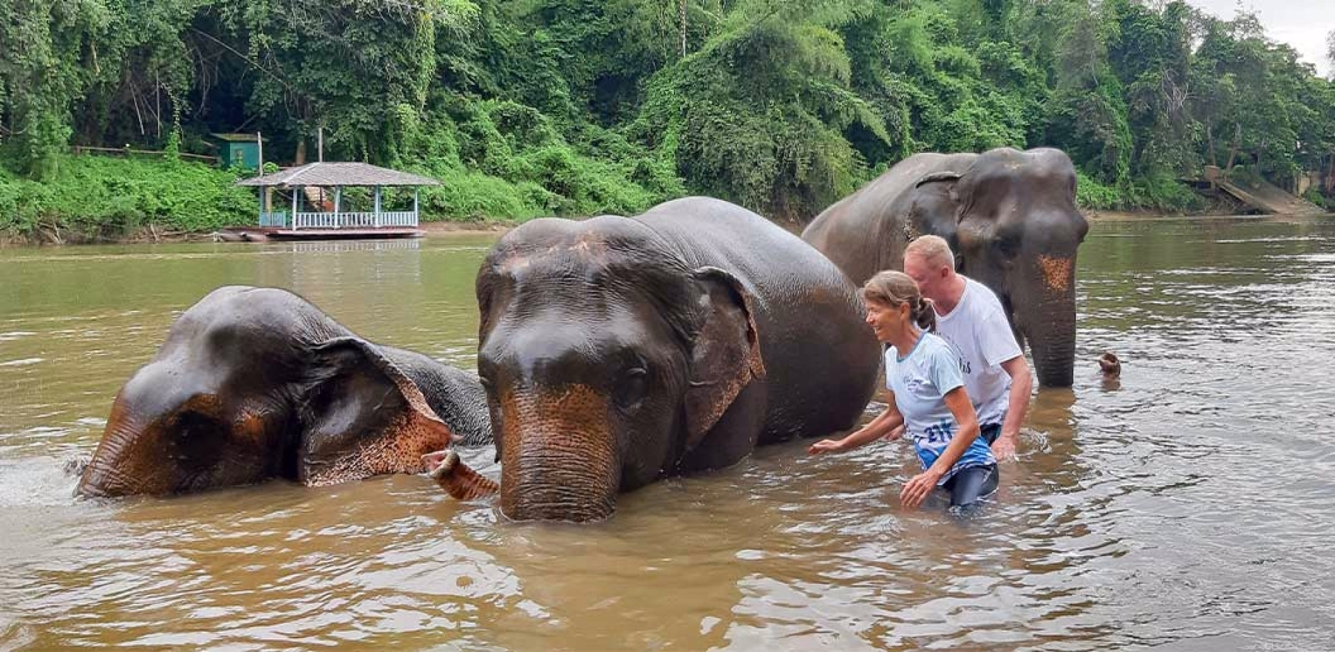 Le matin, départ pour la gare et embarquement vers 10h40 à bord du fameux train de la mort, pour environ 1 h de trajet vers la région de Sai Yok (70 km à l’ouest). Arrivée à l’Elephant Haven pour le déjeuner, puis rencontre avec le guide et les mahouts. L’après-midi est consacré à la préparation de la nourriture et à la découverte des éléphants, suivi d’une promenade dans la forêt avec eux, de jeux dans la boue et d’un bain à la rivière. En fin de journée, retour à Kanchanaburi (60 km, environ 1 h de route).