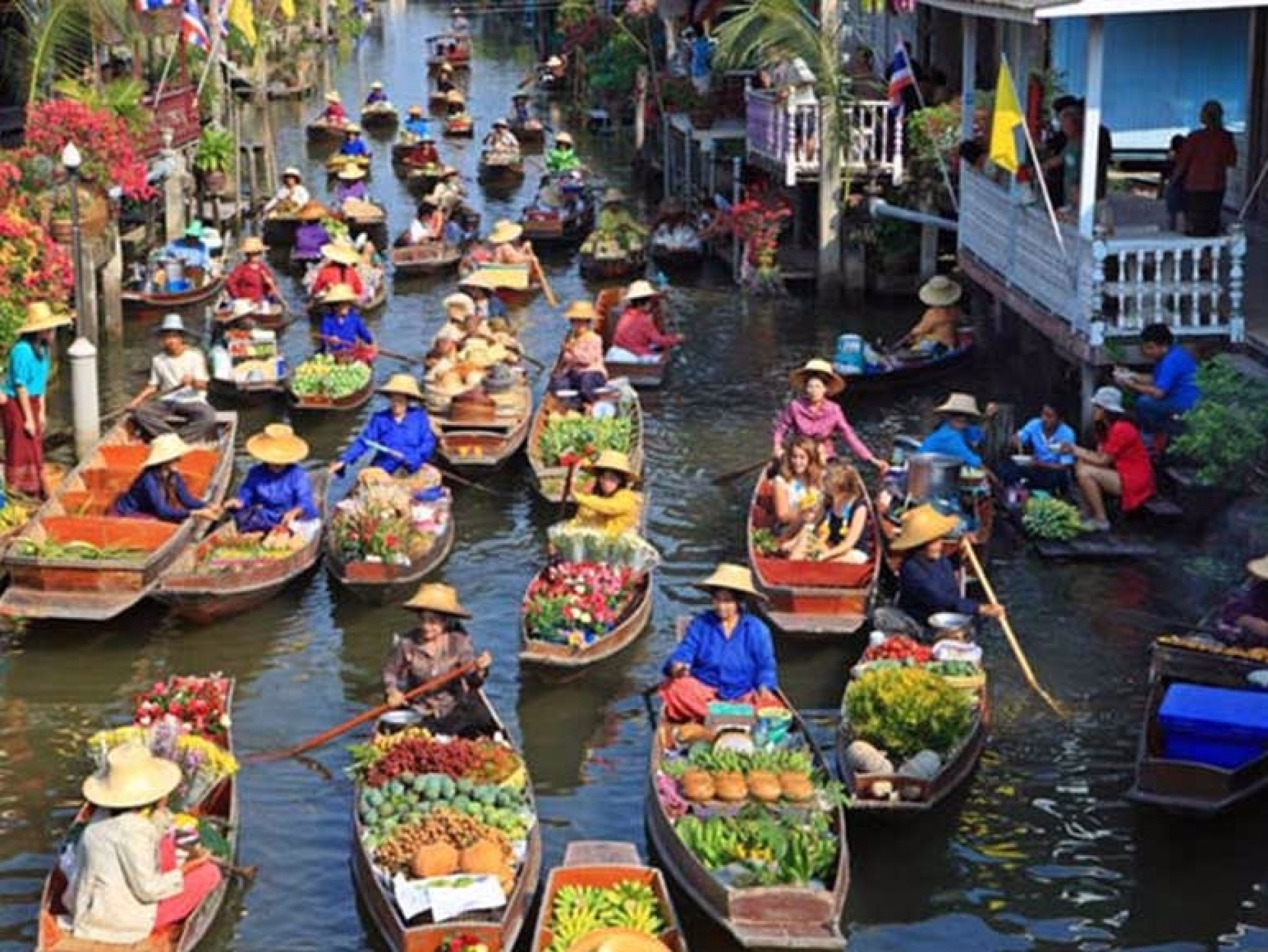 Nous partons pur le petit marché flottant de Tah kah, riche en couleurs et en odeurs. Nous nous rendons ensuite au Marché sur les voies de Mae Klong, où 4 fois par jour, les étals de fruits et légumes se plient à la hâte lors du passage du train traversant le marché. Enfin, demi-journée de découverte de la vie dans les mangroves. En bateau, nous partons à la découverte de ce fragile écosystème. Nous découvrons lors de notre excursion le mode de vie des pêcheurs (ici la pêche de coque se fait depuis une planche de surf) et visitons une ferme de coquillages.
