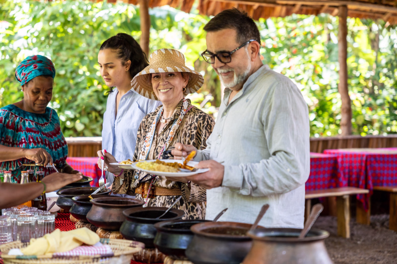 Après le petit-déjeuner, vous rejoignez le village de Mto wa Mbu, un carrefour culturel unique où cohabitent plus de 120 tribus. Accompagnés d'un guide local, vous entamez une balade culturelle à travers les plantations de bananiers et les rizières pour découvrir les méthodes agricoles traditionnelles. Vous visitez des ateliers d'artisans, notamment de sculpture sur bois et de tissage, favorisant des échanges authentiques avec les habitants. Le moment fort de la matinée est un déjeuner chez l'habitant, où vous dégustez des spécialités tanzaniennes préparées par une famille locale. L'après-midi, vous regagnez Karatu pour la randonnée nature d'Endoro au cœur d'une forêt humide. Ce sentier ombragé vous mène jusqu'aux grottes des éléphants, creusées par les pachydermes en quête de minéraux, puis vers une cascade rafraîchissante. Vous retrouvez votre lodge en fin de journée pour le dîner et le repos.