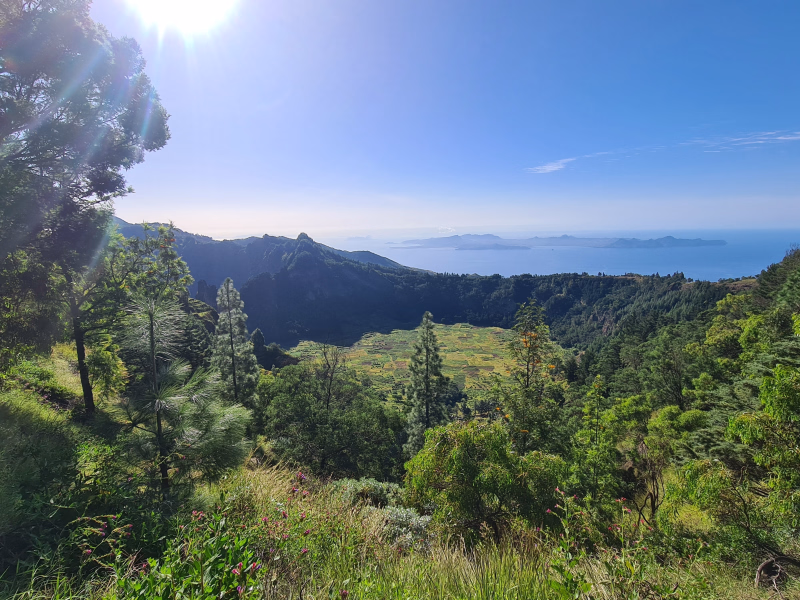 Ce sentier vous mènera à la vallée la plus verdoyante de l'île avec de vastes étendues de canne à sucre, de bananiers, de caféiers, de papayers, entre autres arbres fruitiers. Le sentier continue jusqu'au sommet de la vallée et fait un circuit en contournant celle-ci, traverse toute la vallée de Paul pour profiter des vues et se termine près de la ville des pigeons.