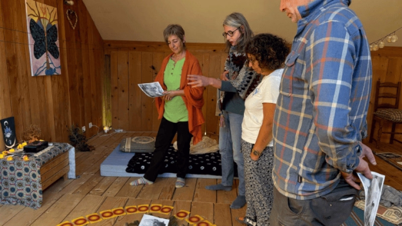 Après un temps d’accueil et d’installation dans des chalets en bois partagés, nous ouvrons ensemble l’espace du séjour autour d’un apéritif chaleureux, au sein duquel chacun peut, à son rythme, déposer ce qu’il est, ce qu’il porte et ce qui l'amène.