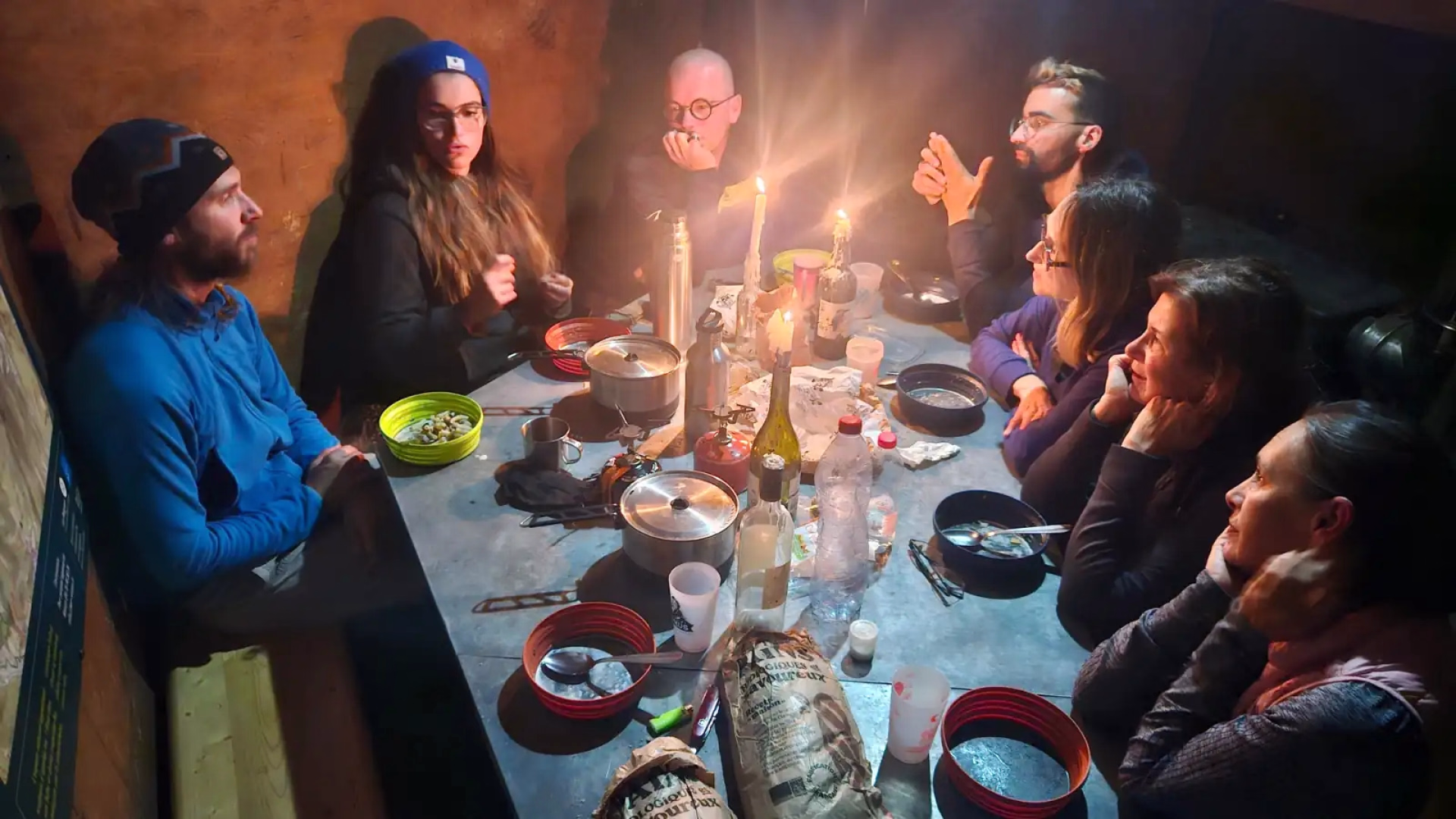 Vous vous installez dans les mini-dortoirs de 4, 6 ou 8, avant de partir pour une première randonnée d’environ 3h (6km, D+ 200m) avec votre guide local (Alexis ou Virginie). L’immersion commence doucement : observation, silence, écoute… Alexis (ou Virginie) vous transmettra ses premières clés de lecture du paysage et du vivant.