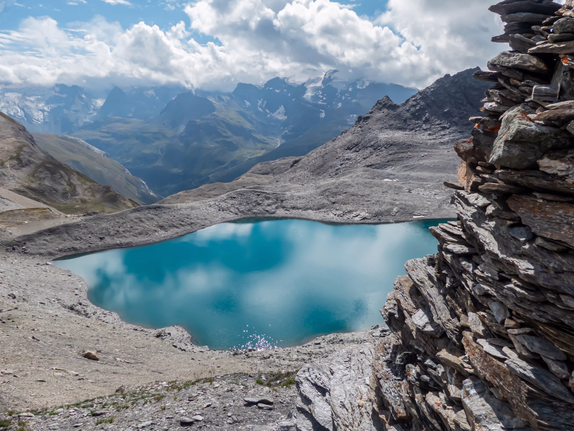 Progressivement, le sentier s’élève dans une ambiance authentique et lumineuse, entre silence minéral et espaces infinis. Chaque étape révèle la richesse d’un territoire façonné par la haute montagne, où la faune discrète et la flore alpine accompagnent la marche.