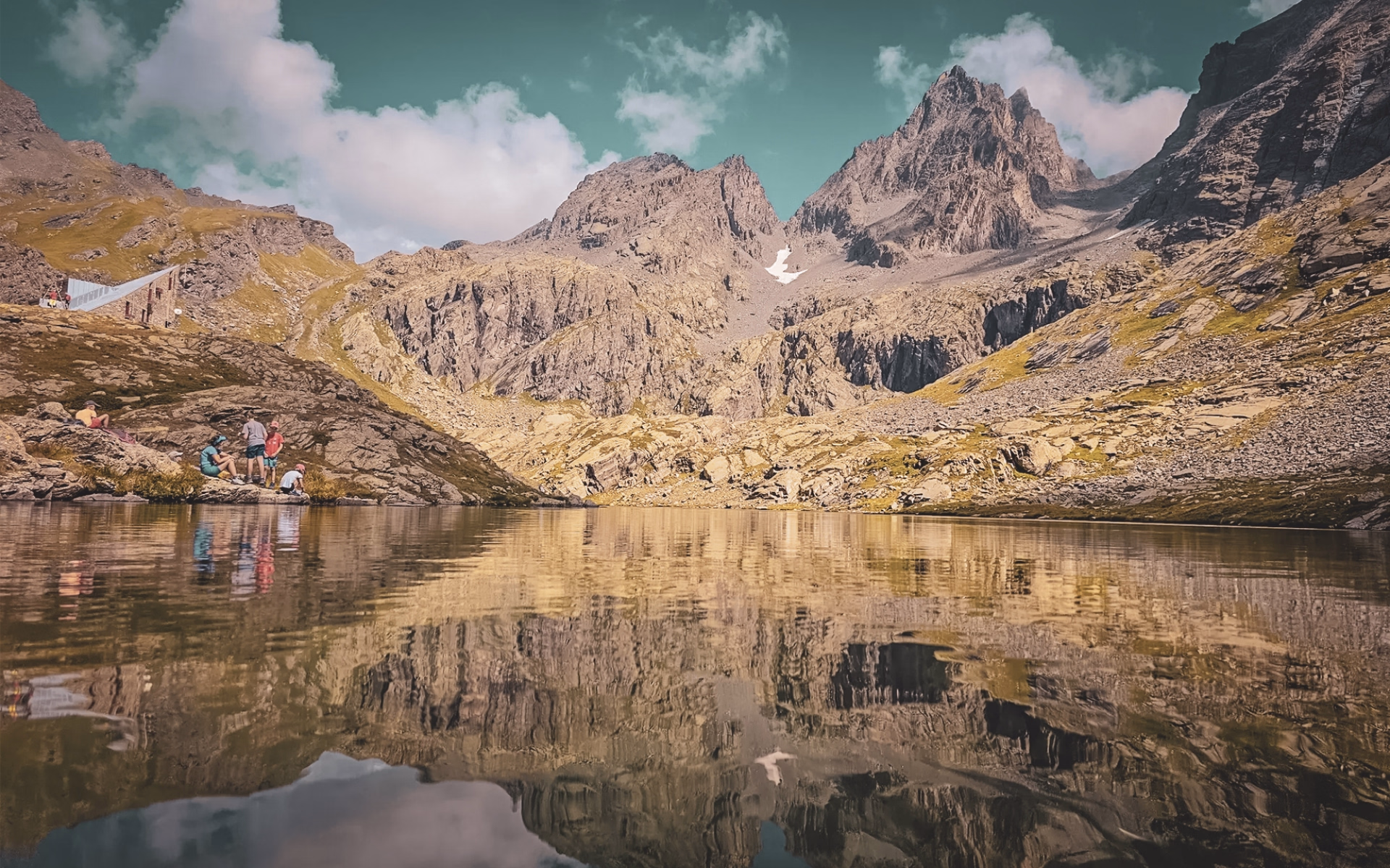 Cap sur le col de la Traversette (2 947 m) après le petit-déjeuner. Ce passage frontalier historique abrite un tunnel du XVe siècle, franchissable selon les conditions. Le versant italien dévoile ensuite une vallée minérale propice à l’observation des bouquetins. Un passage plus aérien peut être évité si nécessaire. Descente au milieu des lacs et des blocs rocheux jusqu’au refuge Quintino Sella, face au Mont Viso.