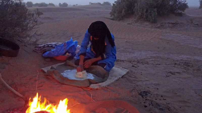 Une fois arrivé, vous vous installerez confortablement dans notre bivouac où un bon feu vous attend. Vous pourrez profiter d’un délicieux dîner, d’animations captivantes et découvrir l’art traditionnel du pain de sable.