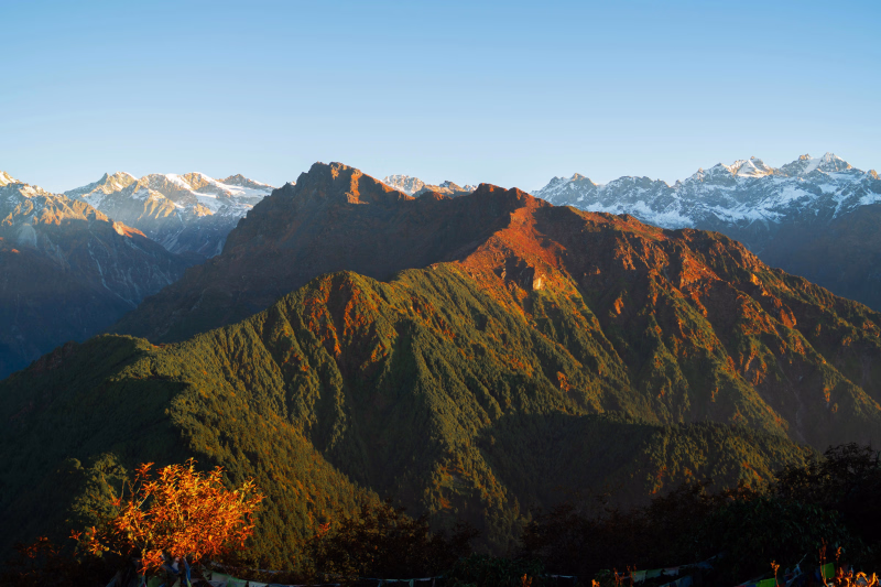 Avant d’atteindre le camp de base, le parcours emprunte des sentiers variés et panoramiques, traversant forêts de rhododendrons, villages gurung traditionnels et crêtes ouvertes sur les grands massifs. Les ascensions de Poon Hill et du pic de Mulde offrent des levers et couchers de soleil spectaculaires, avec des vues saisissantes sur les Annapurnas, le Dhaulagiri et la vallée de la Kali Gandaki, ajoutant une dimension contemplative rare à l’itinéraire.