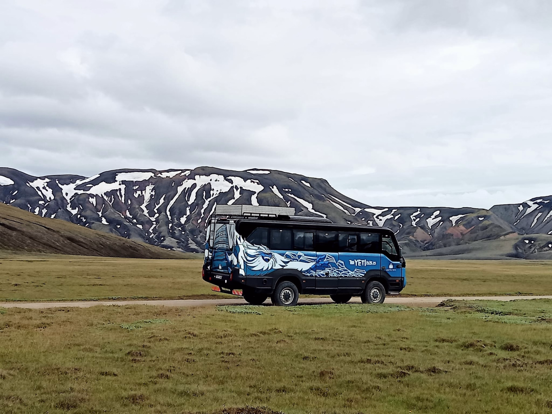Départ en 4x4 depuis Reykjavík (arrêt possible à Hella) pour rejoindre Landmannalaugar, au cœur de la réserve de Fjallabak. Installation du camp à l’arrivée, près des refuges équipés de sanitaires.