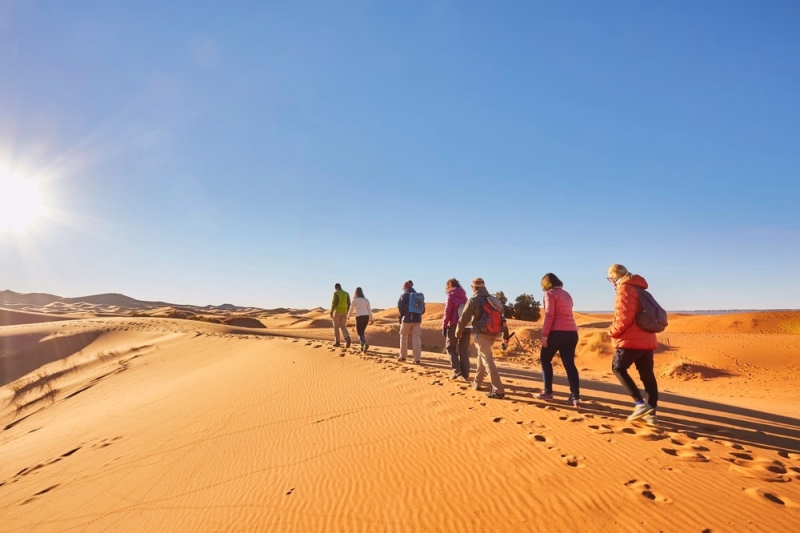 Ce trekking familial de 7 jours dans le désert marocain est conçu pour être accessible à tous, y compris aux participants débutants. Les étapes quotidiennes de marche s’effectuent à un rythme modéré, avec une durée moyenne comprise entre 3h30 et 4h, ponctuée de pauses régulières permettant de se reposer et d’apprécier pleinement la beauté des paysages désertiques.