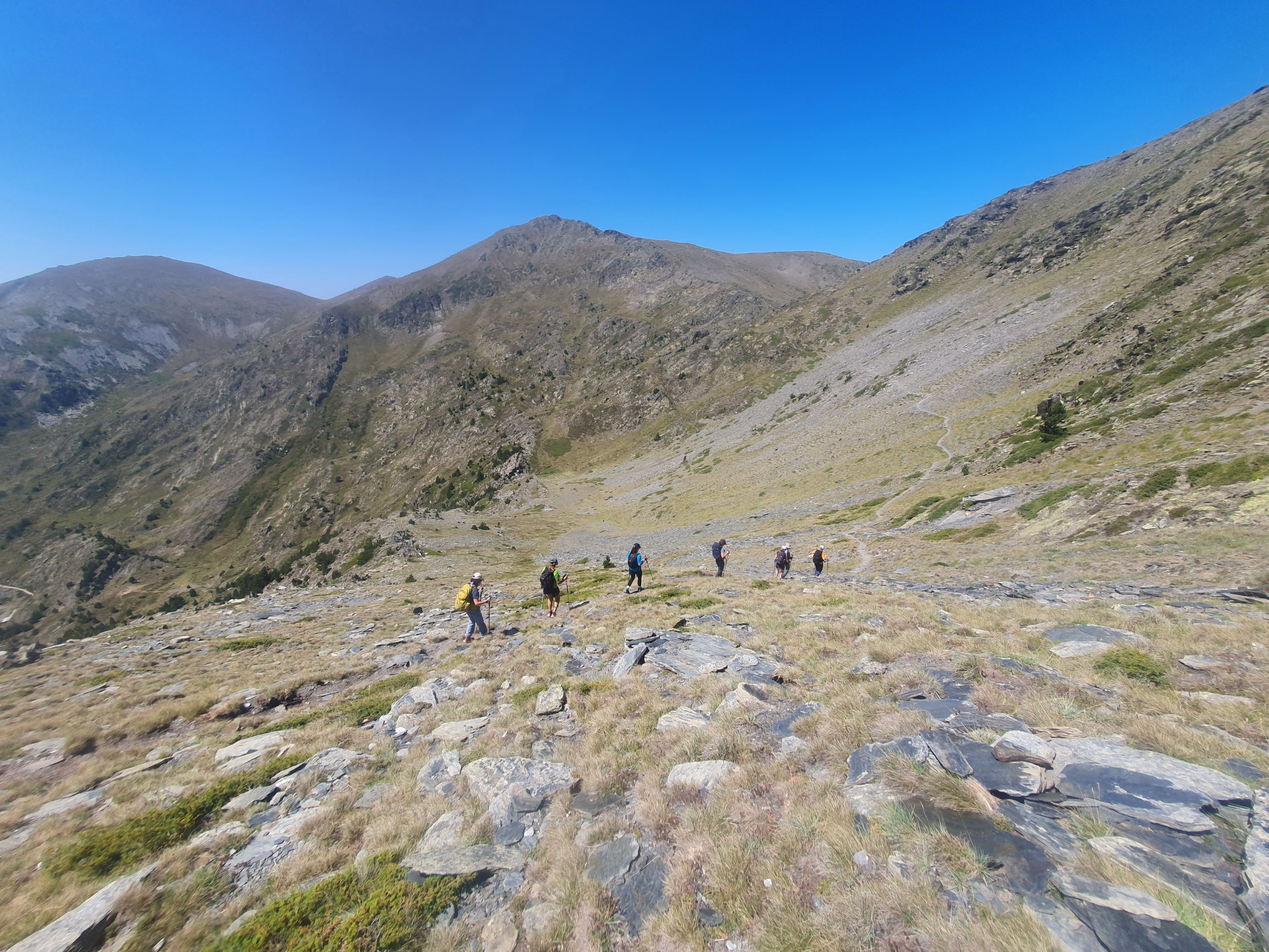 Cette première journée vous amène à plus de 2000 mètre d'altitude à la découverte des crêtes, des sommets et des lacs de la Haute-Ariège. Véritable bol d'air au "cœur du petit Québec Ariègeois" avec ses zones de steppes balayées par le vent, ses landes à myrtilles, ses tourbières et zone humide où pousse la linaigrette arctique, ses lacs aux eaux limpides et aux nuances de bleus et de verts... Dépaysement assuré pour cette randonnée qui sera aussi l'occasion de vous préparer à "l'ascension" du lendemain!