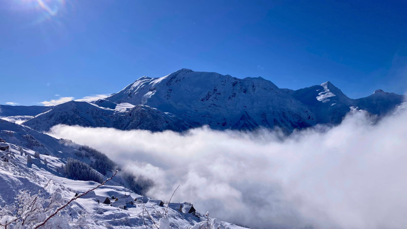 Raquettes aux pieds, nous entamons une belle montée à travers les forêts de mélèzes, baignées d’une lumière dorée. Le silence est ponctué par le crissement de la neige fraîche et quelques empreintes d’animaux discrets. Peu à peu, la vue se dégage et le sommet (2226 m) nous offre un panorama splendide sur la vallée de l’Aigue Blanche, les villages de Molines et de Saint-Véran en contrebas, et les crêtes enneigées à l’horizon.