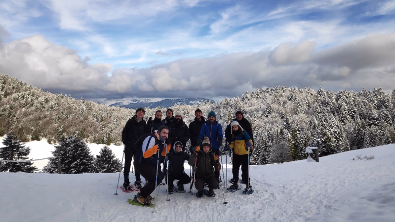 1 paire de chaussures de randonnée tenant bien la cheville et imperméable, à semelle type Vibram (proscrire absolument les bottes et après-skis qui ne sont pas adaptés aux raquettes)