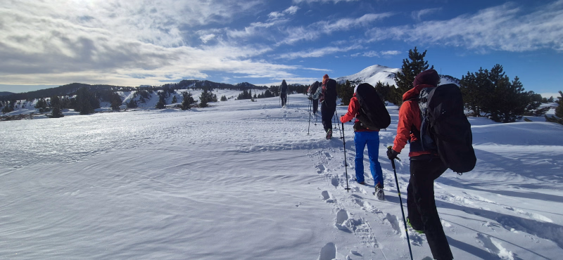 Plan B en fonction des conditions de neige et de la météo : randonnée raquettes en marge du domaine skiable de Porte Pymorens (pas de forfait piéton nécessaire).