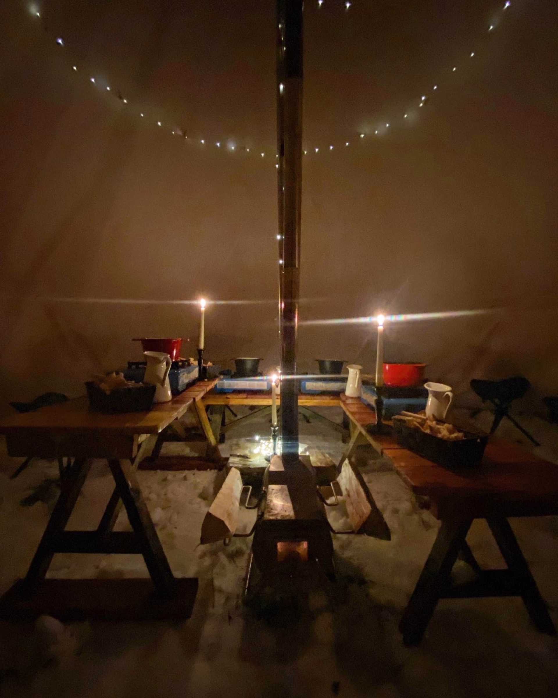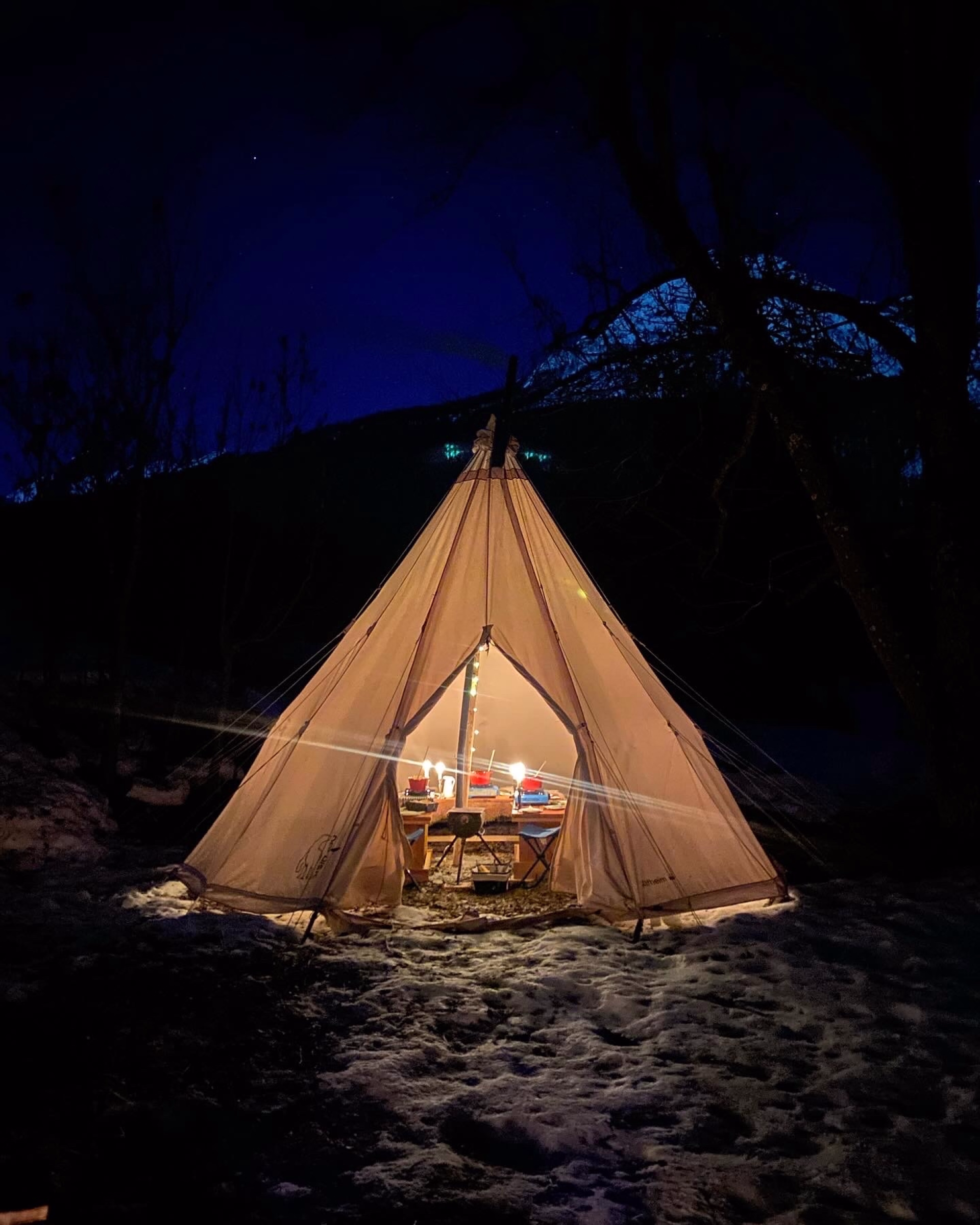 Équipés de raquettes à neige et de pulkas, vous traversez les mélèzes et alpages d’altitude, dans un décor de silence et de nature sauvage. En fin de journée, installez votre campement pour une nuit sous tipi avec poêle à bois : ambiance montagnarde assurée, repas chaud, ciel étoilé et partage d’un moment hors du temps.
