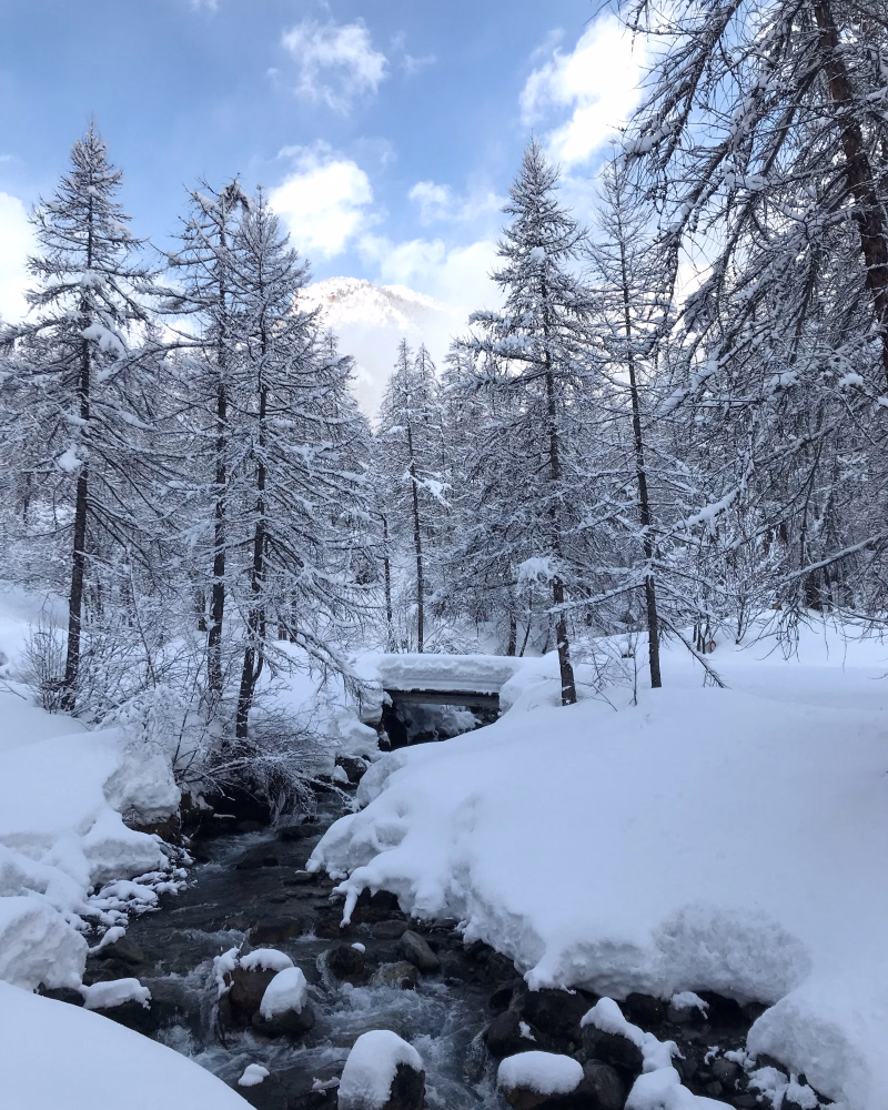 Partez pour une véritable aventure nordique au cœur des Alpes ! Depuis le village de Cervières, vous remontez la vallée en direction des Fonts, un lieu authentique et préservé, niché aux pieds du Chenaillet, réputé pour ses paysages grandioses et ses forêts enneigées.