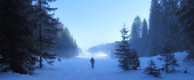 Entre Lajoux et La Pesse, les Hautes Combes du Jura offrent un décor hivernal d’une grande pureté, façonné par la neige, les forêts de sapins et les vastes plateaux ondulants. Ce territoire nordique, emblématique du massif jurassien, se découvre idéalement en raquette, au rythme d’une marche fluide et accessible, loin de toute agitation.