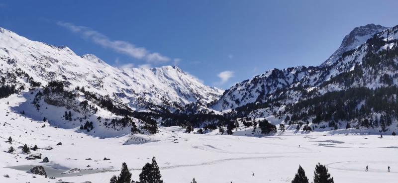 Au cœur de la vallée de Bénasque, véritable joyau des Pyrénées espagnoles, ce séjour hivernal vous plonge dans un univers de haute montagne sauvage et préservée. Encadré par les plus hauts sommets de la chaîne, dont le mythique Aneto, vous explorez un territoire façonné par le granite et encore marqué par la présence de glaciers impressionnants. Chaque journée est une immersion au rythme de la nature : forêts silencieuses, plateaux d’altitude immaculés et panoramas grandioses se dévoilent au fil des itinéraires.