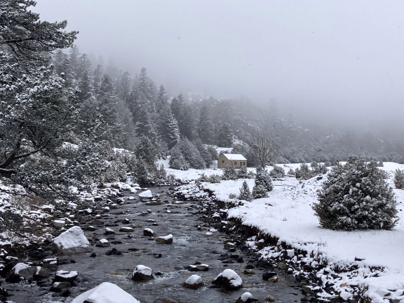 Rendez-vous à 9h à la gare de Saint-Gaudens, avant de prendre la route vers l’Espagne et la vallée de Bénasque. Une fois passé le tunnel de Vielha, vous faites halte pour une première randonnée en raquettes, à proximité du massif des Encantats. Ce moment en pleine nature permet de s’acclimater tranquillement à l’altitude et de goûter à l’ambiance montagnarde du séjour. Le déjeuner se fait en extérieur, dans un cadre paisible et préservé, entouré de panoramas typiques des Pyrénées enneigées.
