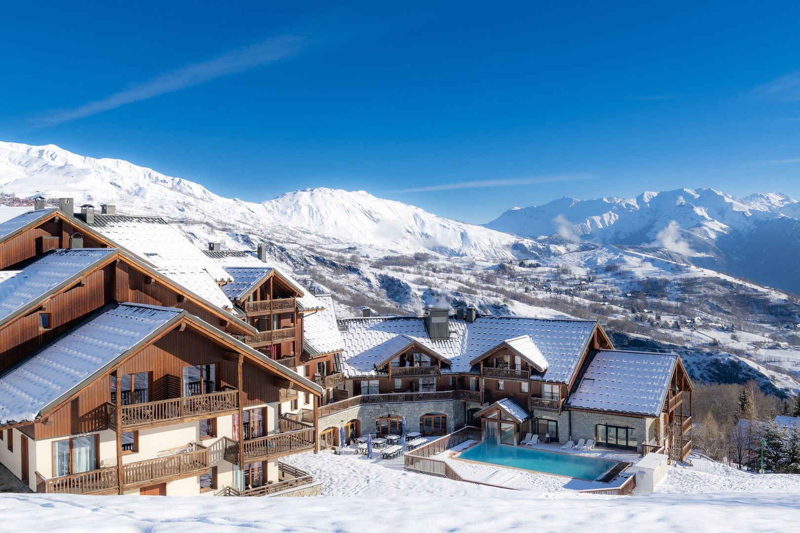 Après l'effort, accordez-vous une parenthèse de bien-être grâce à la piscine extérieure chauffée ou au sauna. Pour ceux qui souhaitent garder le rythme, une salle de fitness est également à votre disposition. Les appartements, chaleureux et parfaitement équipés, disposent pour la plupart d'un balcon offrant une vue imprenable sur les sommets environnants.