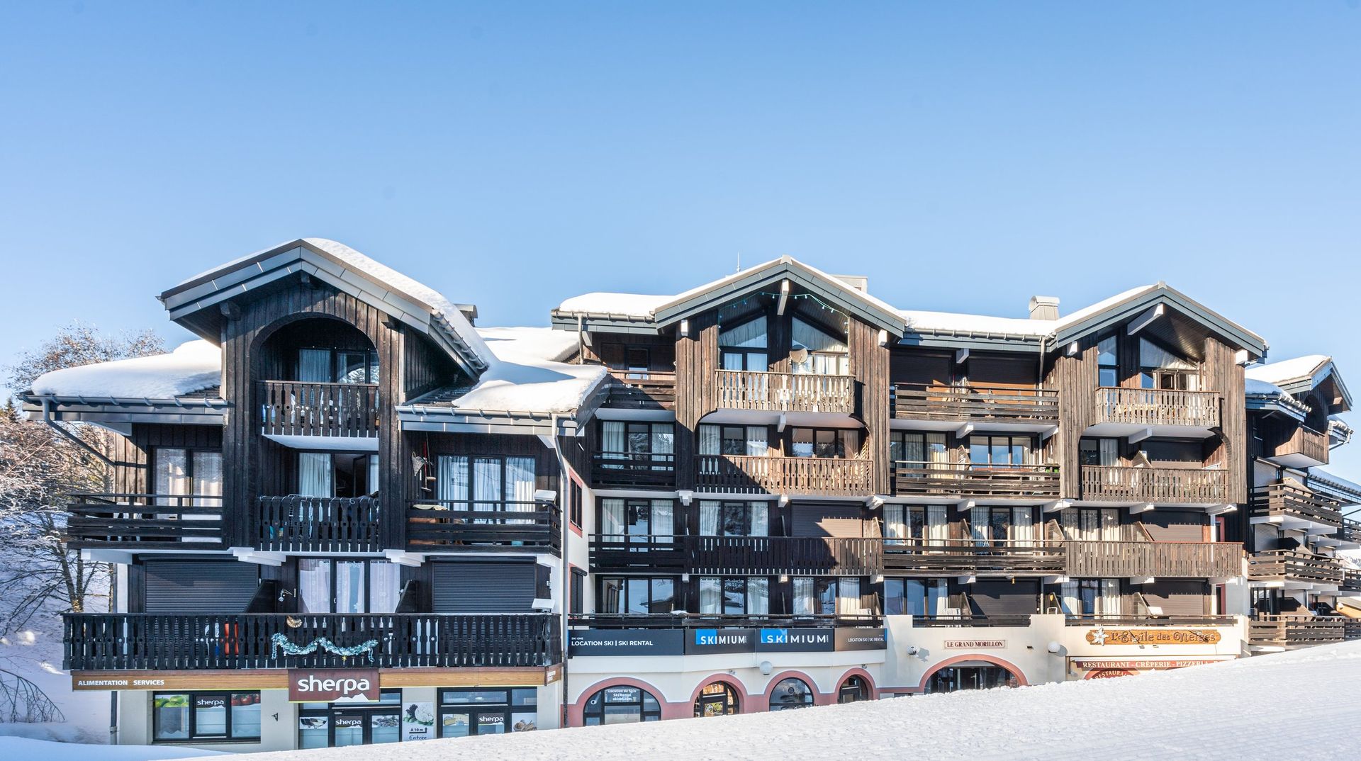 Séjournez à la Résidence Grand Morillon, une adresse chaleureuse au style chalet alpin, idéalement implantée au cœur de Morillon 1100, avec un accès privilégié au pied des pistes. Vous profitez d’un emplacement recherché pour rejoindre facilement le vaste domaine du Grand Massif, dont le départ principal se situe à environ 450 mètres.