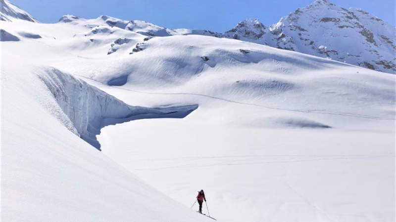 Nous sommes en Haute Maurienne, les quantités de neige dans cette région sont monstrueuses, bénéficiant des précipitations d'ouest, mais aussi des retours d'est, venant de l'Italie voisine. L'endroit est sauvage, grandiose, avec de grands espaces glaciaires, des cirques superbes. Nous établissons notre camp de base au refuge des Evettes, superbement placé sur son promontoire et offrant une vue à plus de 180°. Il baigne dans le soleil, ses gardiens sont sympas, on y mange bien ... Le top! Sur ce court séjour en ski de randonnée, nous irons à la découverte des pentes et sommets faciles avec toujours l'Albaron comme point de repère. Préparez-vous pour ces descentes en grandes courbes sur de la neige "velours", transformée juste comme il faut. Un très beau séjour, sans objectif gigantesque, à la recherche du bon ski sur les glaciers !
