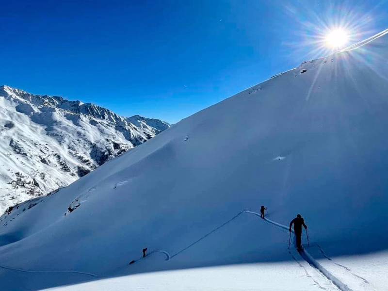 - Le matériel technique personnel : skis de randonnée, peaux de phoque, chaussures de randonnée, bâtons de ski (location possible, spécifiez dans la réservation si vous avez besoin de louer le matériel)