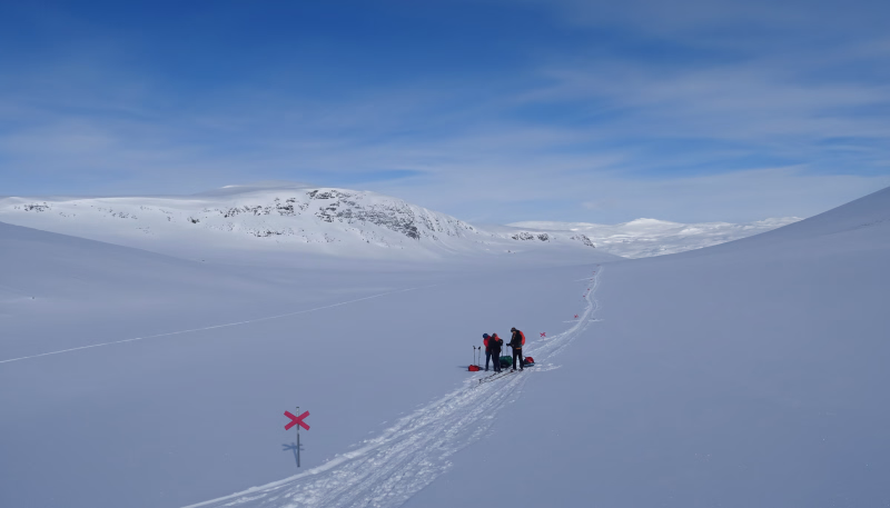 Progression dans une vallée large et majestueuse, entourée de sommets parmi les plus élevés de Suède. L’itinéraire est relativement court, ce qui permet de profiter pleinement de l’environnement et du refuge d’arrivée. Soirée calme au refuge, dans une ambiance isolée et typiquement nordique.