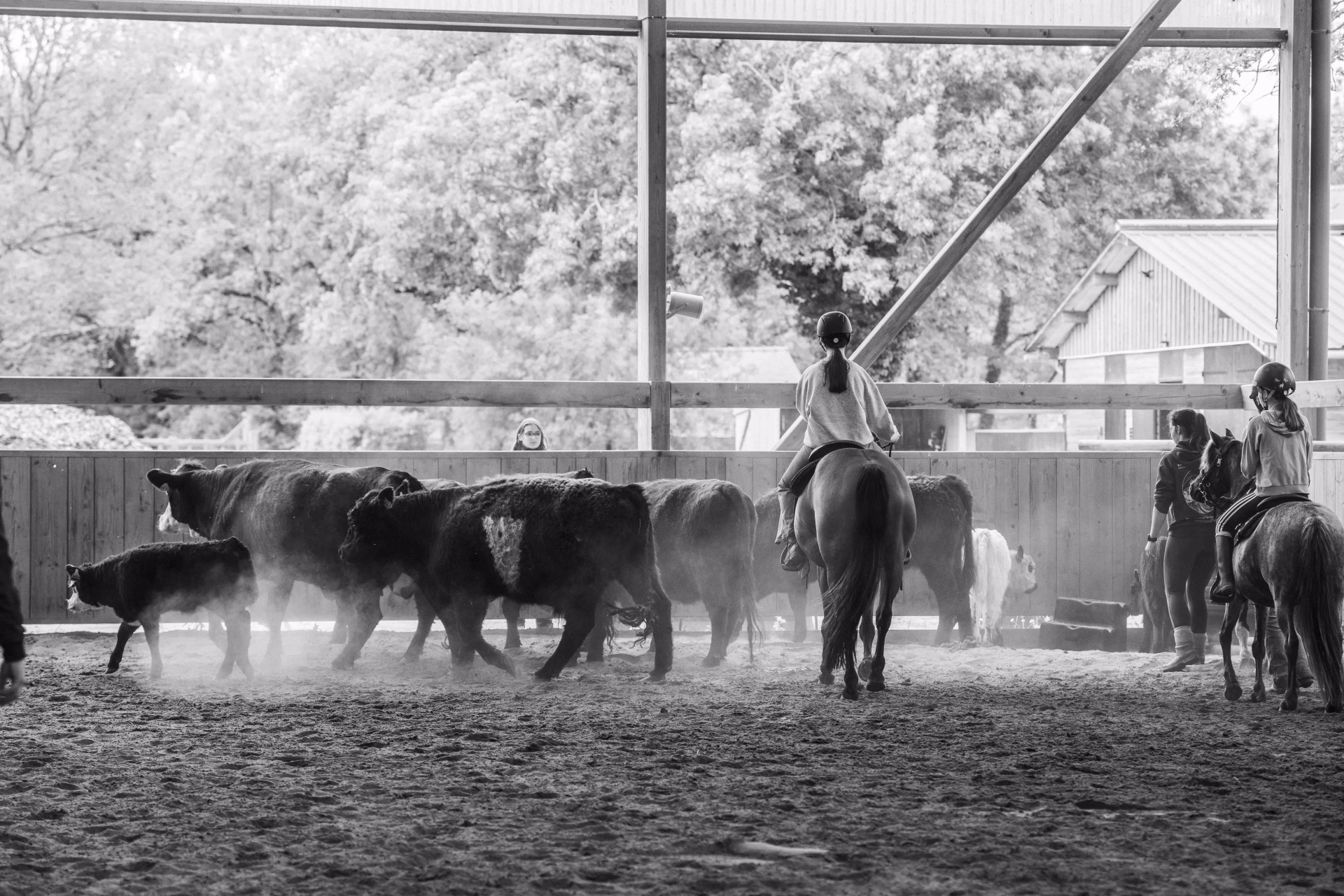 Vous consacrez cette matinée au travail au sol, pilier indispensable de l’équitation western et de la vie au ranch. Cette pratique vous permet d'établir une connexion solide et des codes clairs avec votre monture avant de vous mettre en selle. Vous découvrez comment instaurer le respect et le calme, des étapes essentielles qui vont du débourrage jusqu’à la préparation technique pour la compétition. L'après-midi marque une immersion dans le travail du bétail, une discipline où la coopération entre l'homme et le cheval prend tout son sens. Cette séance, accessible même sans expérience préalable en monte américaine, vous initie aux manoeuvres de précision pour diriger le troupeau. Vous apprenez les bases théoriques avant de ressentir vos premières sensations de contrôle du bétail pour clore ce séjour de manière authentique.