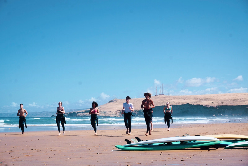 Après la session du matin, profitez d’une pause bien méritée avec un déjeuner convivial. L’après-midi est consacré soit à une deuxième session de surf en pratique libre (free surf), soit à un moment de détente : plage, repos à la guesthouse ou découverte de Tamraght.
