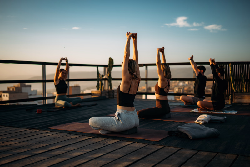 - 6 séances de yoga au coucher du soleil sur notre rooftop avec vue panoramique sur l’océan et les montagnes (le dimanche soir : pas de yoga)