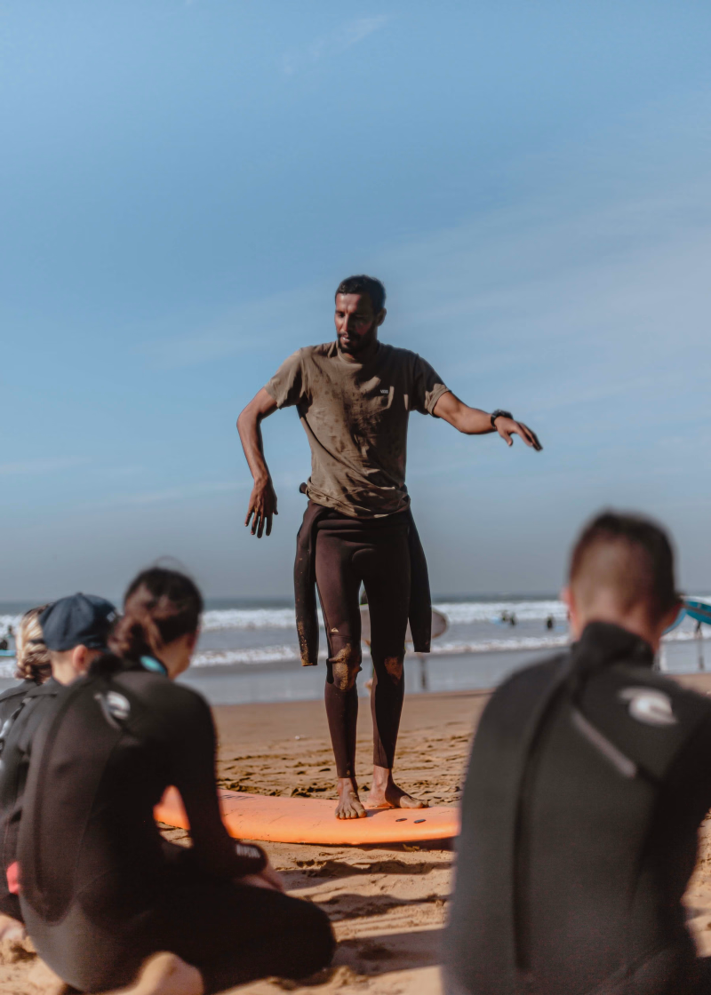 Diplômé de la Fédération Marocaine de Surf, il encadre avec précision, douceur et une vraie passion pour la transmission.