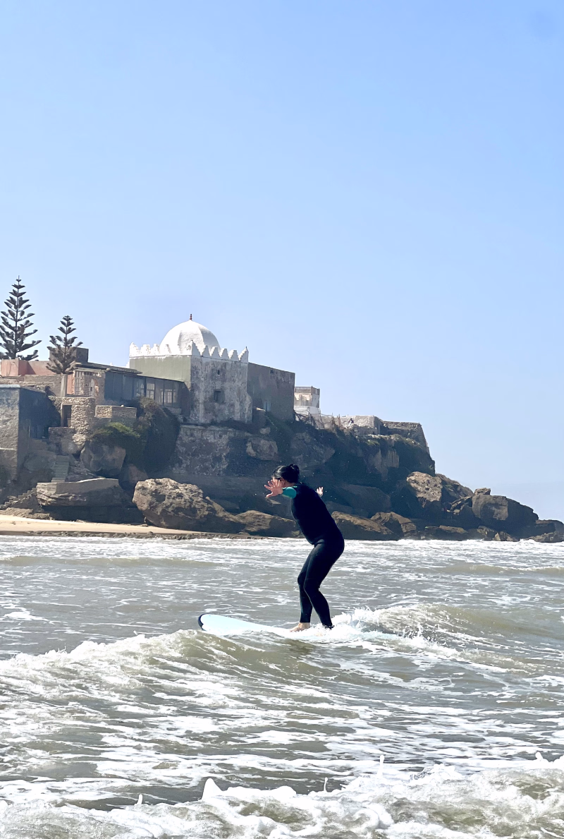 Le matin, direction la plage de Mils (accessible en quelques minutes à pied depuis le riad), ou un autre spot à proximité si les conditions ne sont pas optimales sur la plage de Mils, pour une leçon de surf encadrée par des professionnels. Dans un cadre idéal, entre sable doré et vagues régulières, vous perfectionnez votre technique. L’après-midi est libre, placée sous le signe de la détente : farniente au bord de la piscine du Riad, de l’océan ou exploration des alentours. Pour les plus curieux, des activités optionnelles sont proposées, telles qu’une balade à dos de dromadaire, à cheval ou une sortie en quad dans les dunes environnantes (non incluses dans le séjour).