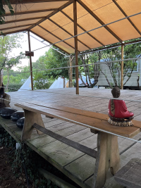 Vous pouvez améliorer votre séjour en réservant l’un de nos Tipis, qui sont équipés de lits surélevés, d’éclairage et d’électricité.
