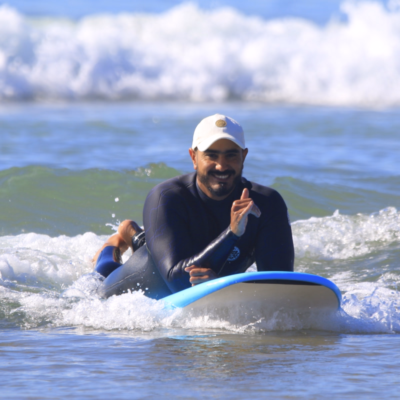 Hatim est co‑fondateur et coach de surf au Elhati Surf Camp à Tamraght, Maroc. Passionné par l’océan et les vagues, il est le cœur battant du surf camp, alliant énergie, pédagogie et bonne humeur pour offrir à chaque surfeur une expérience enrichissante et mémorable.
